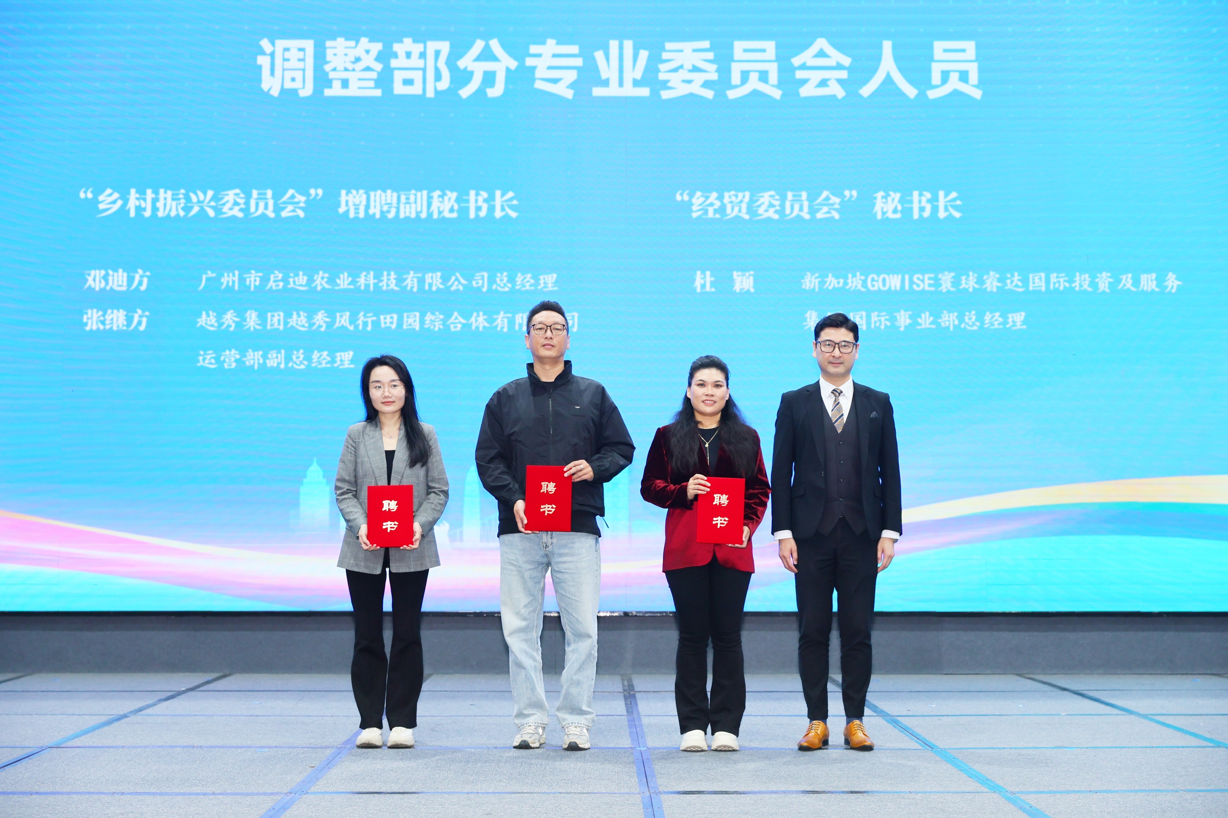 为进一步优化组织架构,强化专科服务遵循,步履上增聘李凯伦为常务副会长,沈晖、曾剑华等2东说念主为副会长,邓迪方、叶伟芝、卢杰、杨瑶、张继方、黄文飞等6东说念主为理事;同步增聘邓迪方、张继方为乡村振兴委员会副秘书长,转化杜颖为经贸委员会秘书长。簇新血液的注入,将进一步升迁联谊会服务的精确度与专科性,为各项办事开展注入新活力。